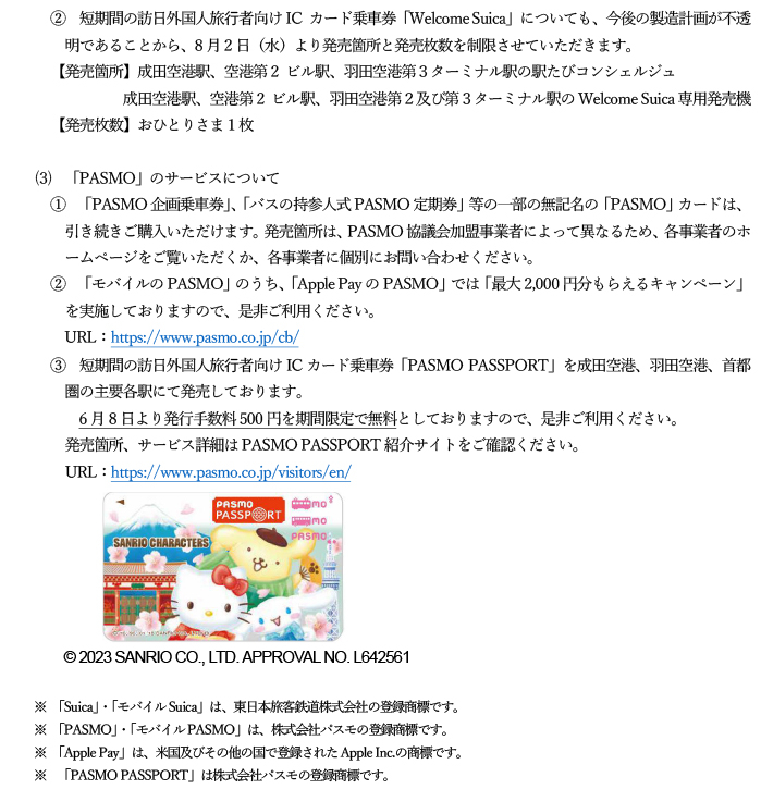 記名式の「Suica」及び「PASMO」カード発売の一時中止に関するお知らせ