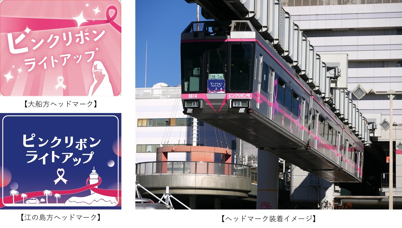 湘南モノレール株式会社は、本イベントに合わせ、横浜デジタルアーツ専門学校の学生がデザインしたピンクリボンライトアップ2025inかながわのヘッドマークを湘南モノレール5613編成ピンクリボン号に装着し、9月27日(土)~10月31日(金)まで運行いたします。