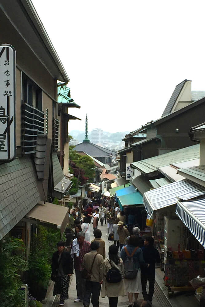 2020年を見据えて工事中の江の島弁天橋を渡って、いよいよ江の島上陸。参道を進みます。