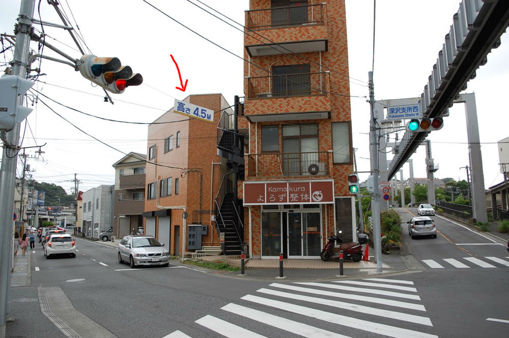 大船から湘南モノレールの下を歩いていたところ、頭上に「高さ4.5m」と書かれたワイヤーに出会った。