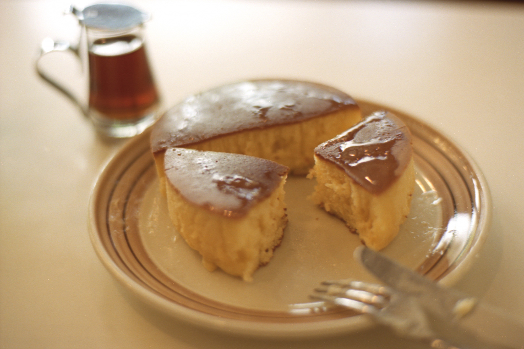 表面はパリッ。中はフワッ。メイプルシロップをたっぷりかけていただきます。シアワセ。